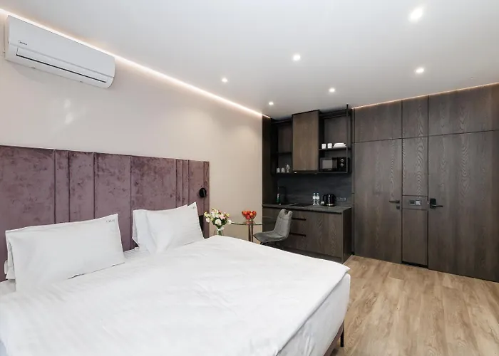 The aparthotel is located near Brodsky Synagogue, about 300 metres from Palats Sportu tube station. The city centre is within 15 minutes' walk away. Khreschatyk Street is also located near the accommodation. The hotel is only a short drive from the functioning St. Michael's Golden-Domed Monastery.