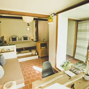 The rooms have wood floor as well as an electric kettle, a fridge, and glassware.